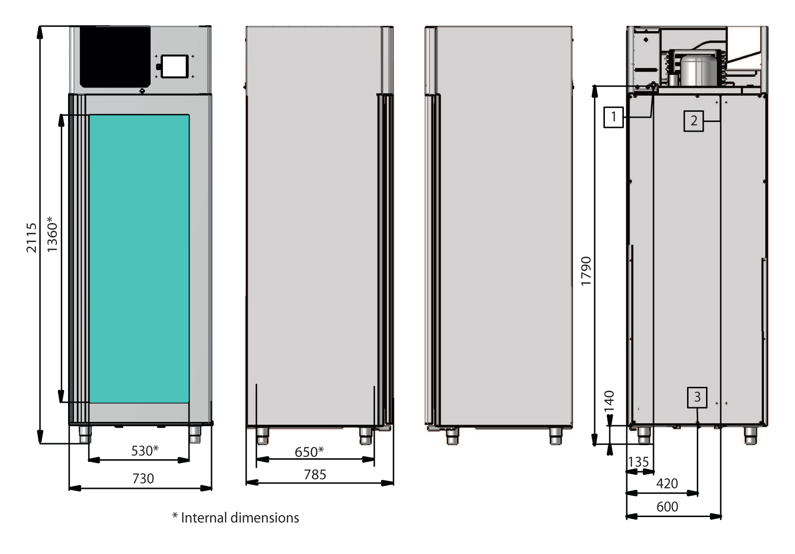The cabinet features Climatouch technology for optimal temperature control and Fumotic technology to regulate humidity levels. With 7 polypropylene shelves, it has a spacious capacity for cheese. The glass doors allow easy viewing of the contents without opening the cabinet. Additionally, the sturdy 304-type stainless steel construction and 4 adjustable legs ensure stability on any surface.